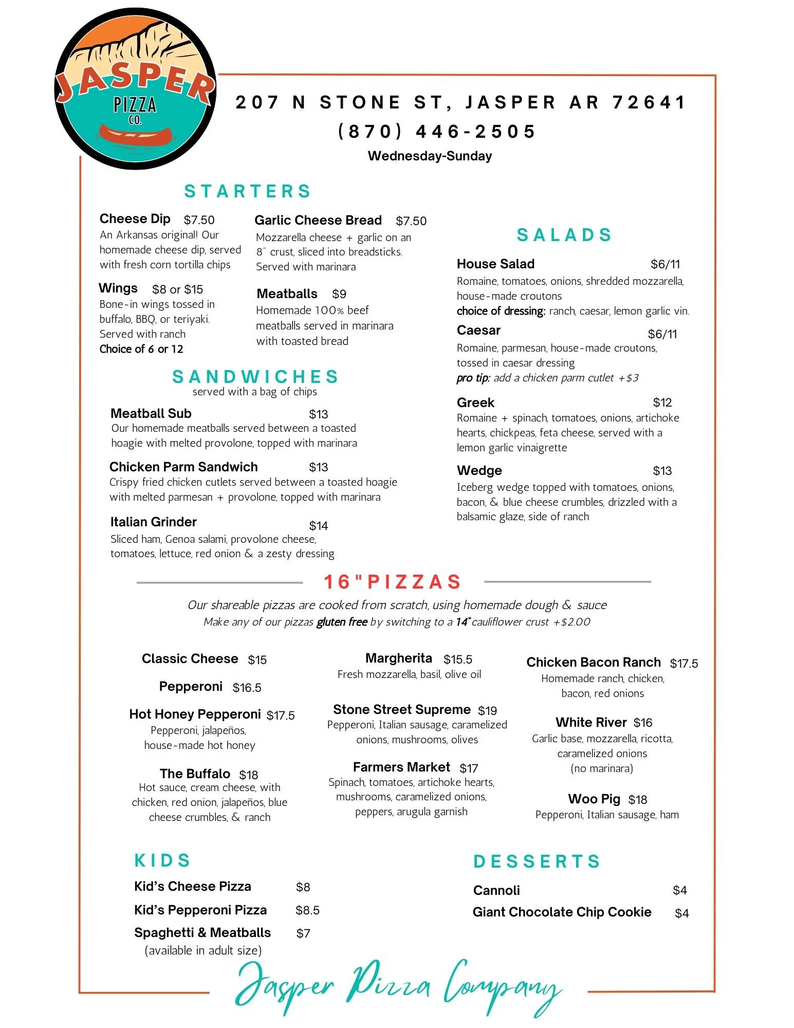 (Hours will vary during our busy seasons. We make everything from scratch and we do sell out of pizza dough early. Please give us a call before making the trip out if you’re traveling far!)